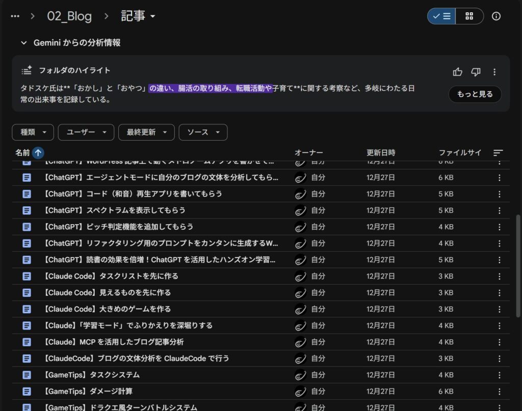 Google ドライブにブログの過去記事をまとめてアップロードし、Gemini で活用できるようになりました。