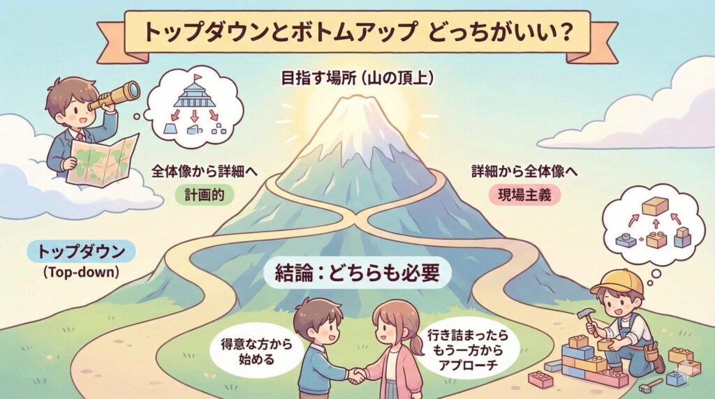 それが、「トップダウン」と「ボトムアップ」のアプローチです。